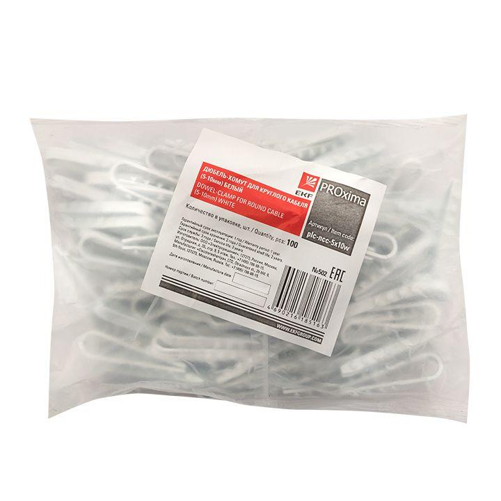 Дюбель-хомут d5-10мм для круглого кабеля бел. (уп.100шт) PROxima EKF plc-ncc-5x10w