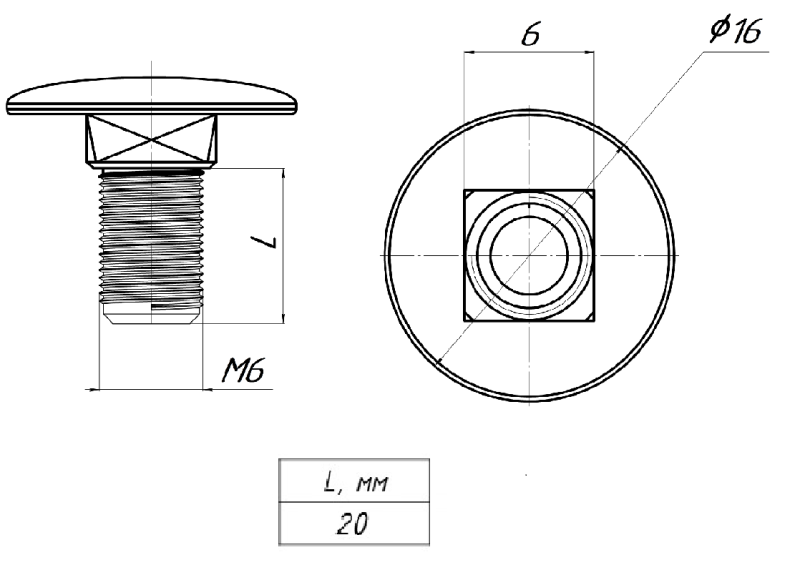 Винт с квадратным подголовником М6х20 EKF wkm6x20