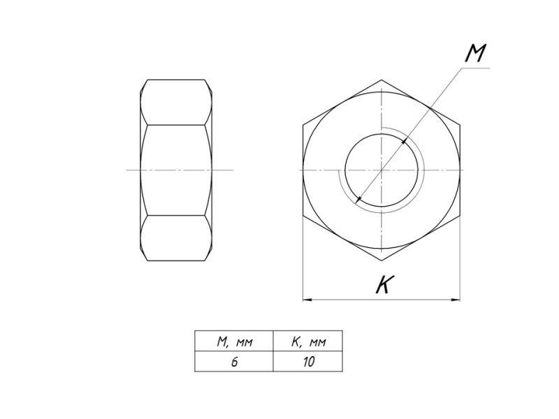 Гайка шестигранная М6 EKF g6grm6
