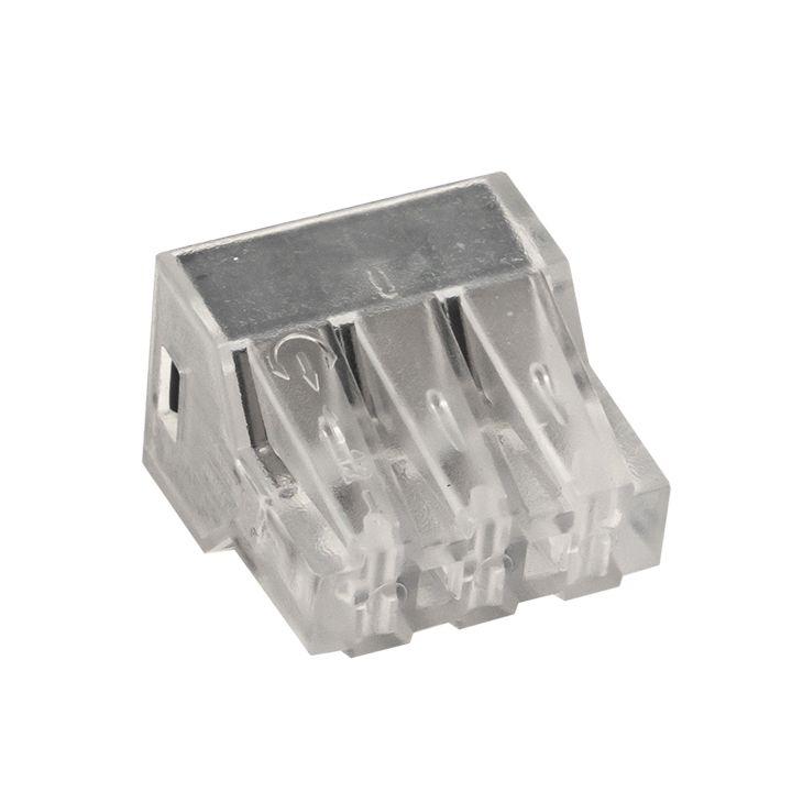 Удобство данных клемм заключается в безвинтовом креплении проводников (используется