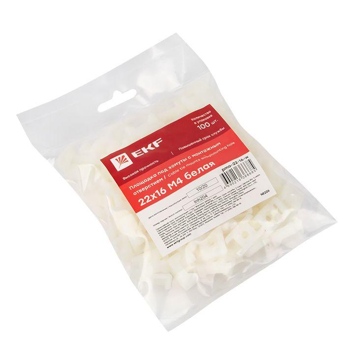 Площадка под хомуты (22х16) с монтажным отверстием М4 бел. (уп.100шт) PROxima EKF pmo-22-16-w