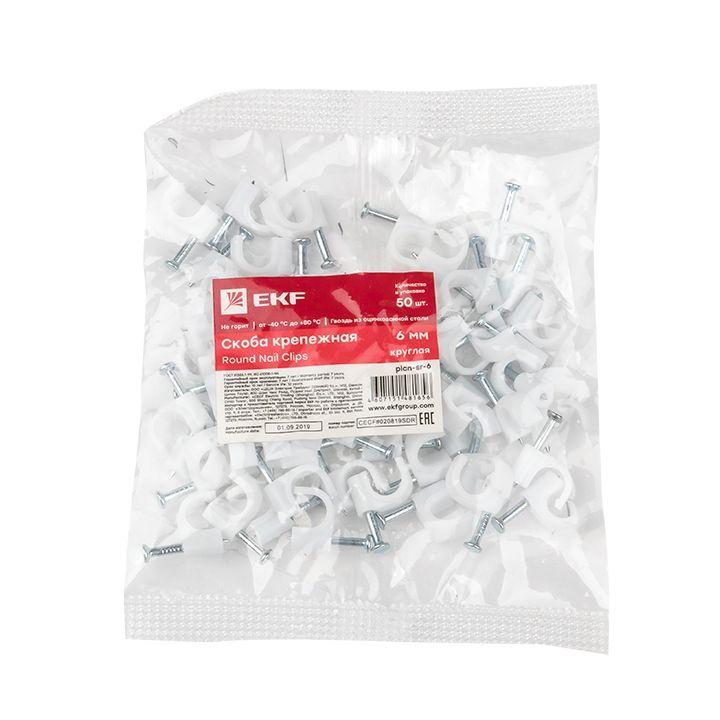 Скоба крепежная круглая с гвоздем d6мм пластик. (уп.50шт) EKF plcn-sr-6