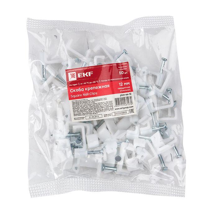 Скоба крепежная квадратная плоская 12мм (уп.50шт) EKF plcn-ss-12