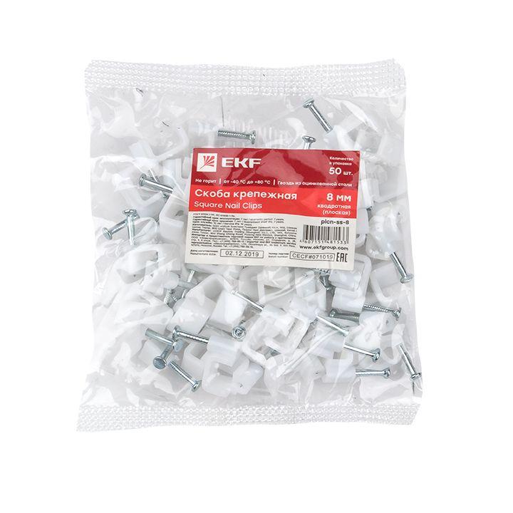 Скоба крепежная квадратная плоская 8мм (уп.50шт) EKF plcn-ss-8