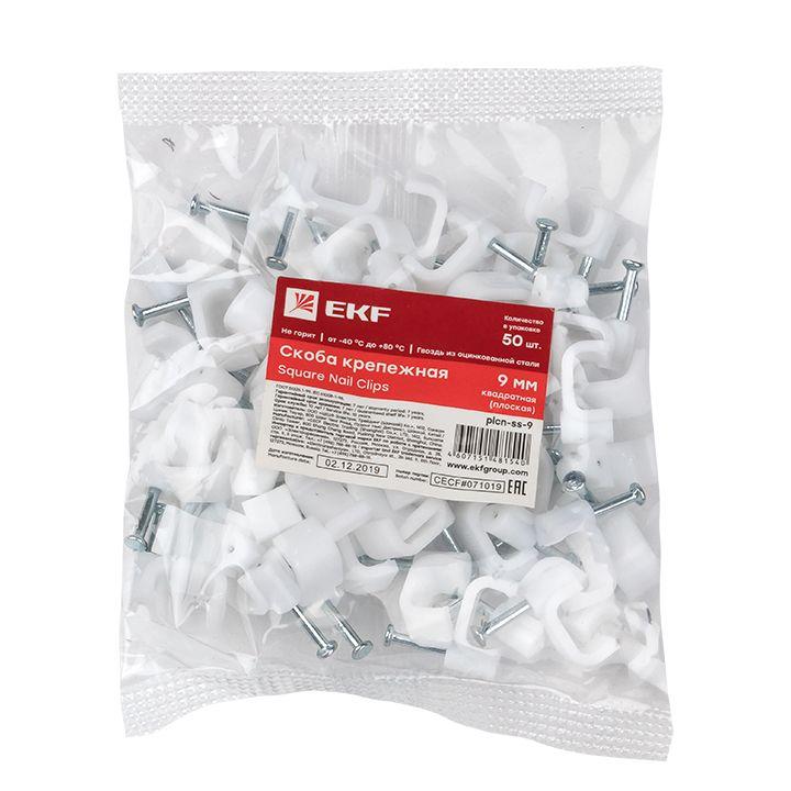 Скоба крепежная квадратная плоская 9мм (уп.50шт) EKF plcn-ss-9