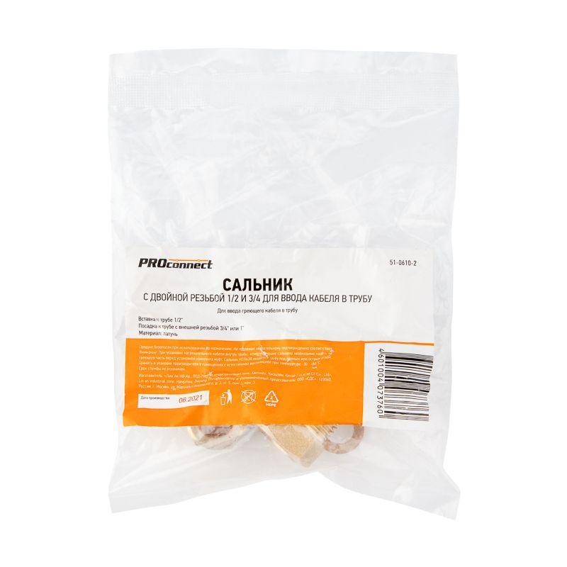 Комплект для ввода кабеля в трубу (сальник) с двойной резьбой 1/2 и 3/4 PROCONNECT 51-0610-2