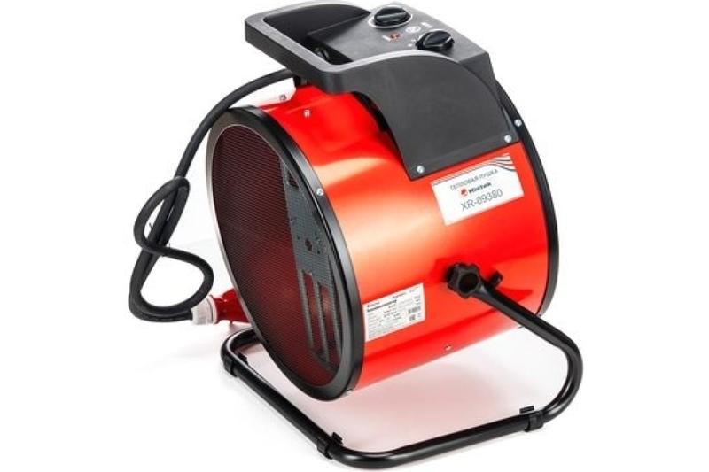Тепловая пушка электрическая Hintek XR-09380 ? надежное оборудование для обогрева промышленных, производственных помещений, строительных объектов. В его основе ? керамический элемент нагрева мощностью 9 кВт. Модель работает в режимах 6 кВт и 9 кВт, выбор которых зависит от площади и параметров помещения. Также можно выбрать вентиляцию без обогрева.