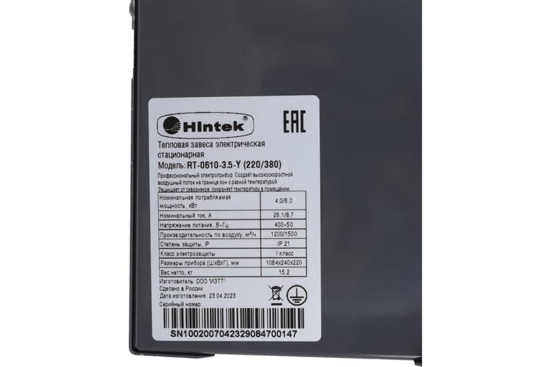 Завеса тепловая 6кВт RT-0610-3.5-Y (220/380) HINTEK 04.03.01.214408