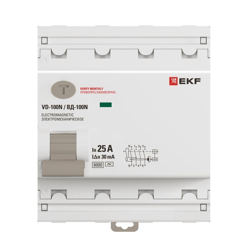 Выключатель дифференциального тока 4п 25А 30мА тип AC 6кА ВД-100N электромех. PROxima EKF E1046M2530