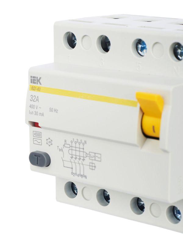 | Наименование производителя: | УЗО ВД1-63 4Р 32А 30мА ИЭК |