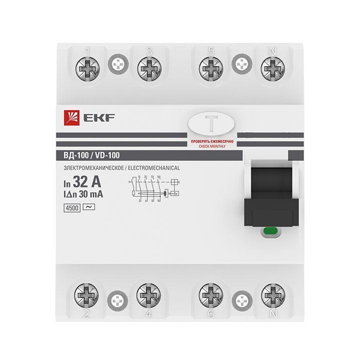 Устройство Защитного Отключения УЗО ВД-100 4P 32А/30мА (электромеханическое) EKF PROxima