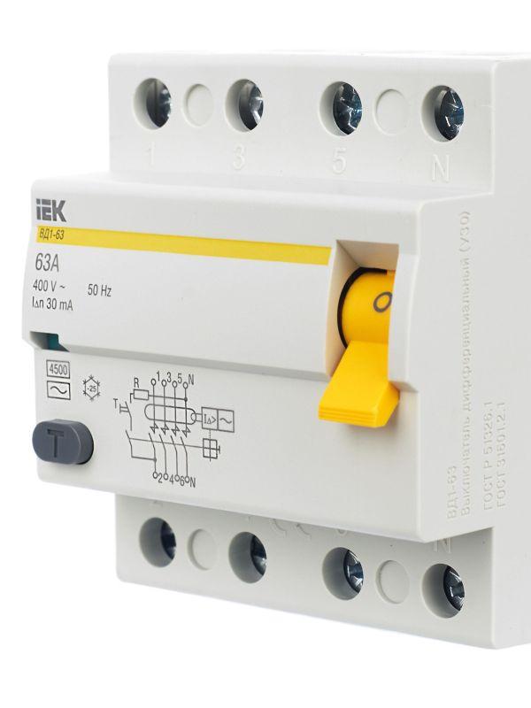 | Наименование производителя: | УЗО ВД1-63 4Р 63А 30мА ИЭК |