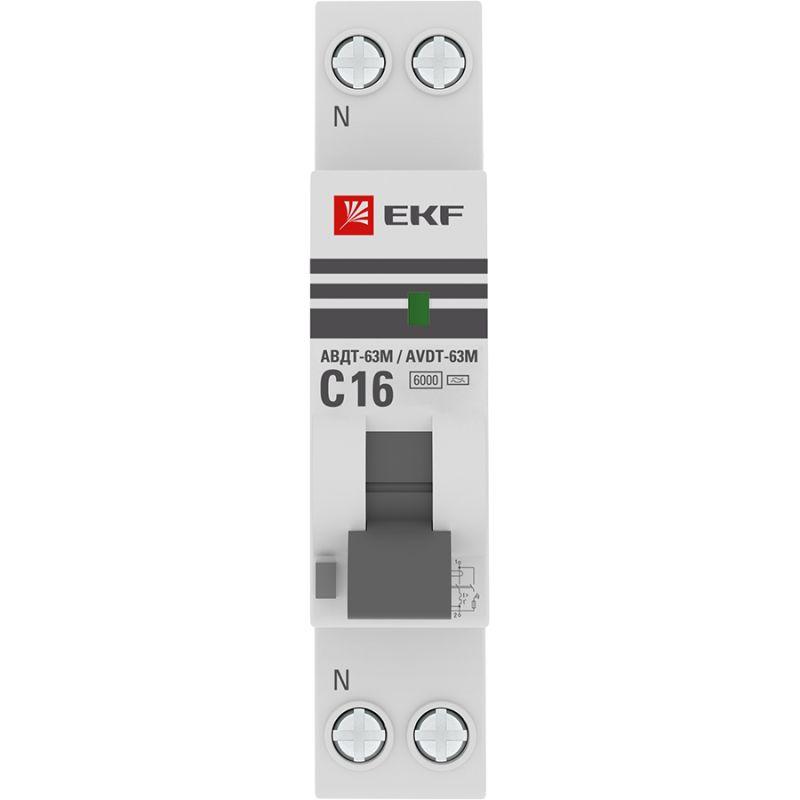 Выключатель автоматический дифференциального тока 1мод. C 16А 30мА тип А 6кА АВДТ-63М (электрон.) PROxima EKF D636EA16C30