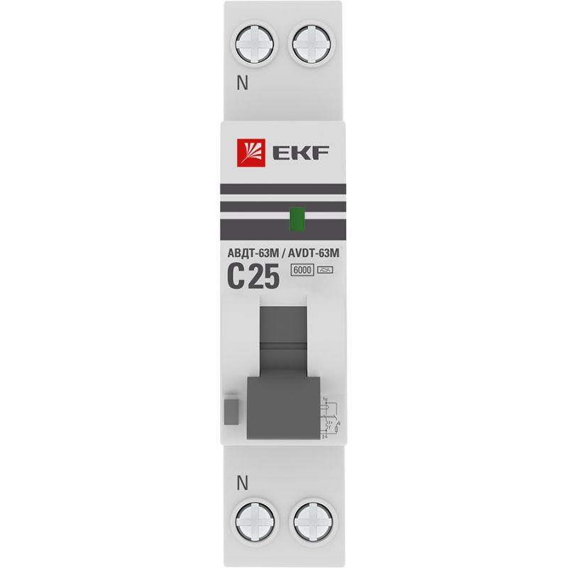 Выключатель автоматический дифференциального тока 1мод. C 25А 10мА тип А 6кА АВДТ-63М (электрон.) PROxima EKF D636EA25C10