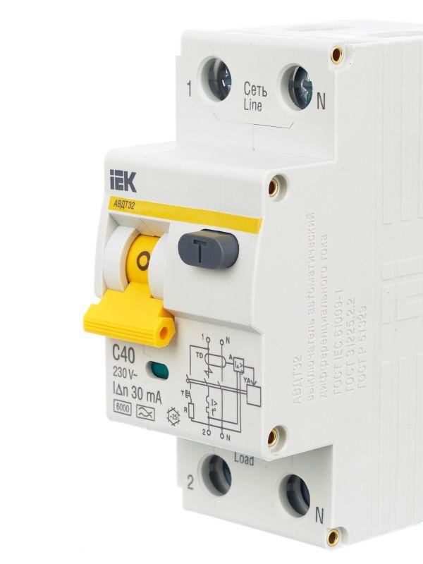Выключатель автоматический дифференциального тока 2п (1P+N) C 40А 30мА тип A 6кА АВДТ-32 IEK MAD22-5-040-C-30