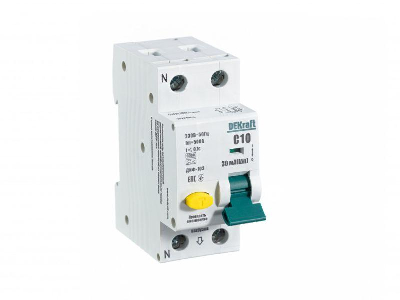 Автоматический выключатель дифференциального тока серии ДИФ-103 DEKraft; 1P+N; ном.ток 10 А; характеристика C; откл.способность Icn = 6 kA; ток утечки 30 мА; тип - А; блок дифф.защиты – электронный; ширина – 2 мод. х 18 мм; монтаж – на DIN-рейку. АВДТ применяются в сетях напряжением до 220 В пер.тока для защиты человека от поражения электрическим током и электроустановок от сверхтоков и токов утечки. Аппараты ДИФ-103 являются более компактным вариантом АВДТ по сравнению с серией ДИФ-101.