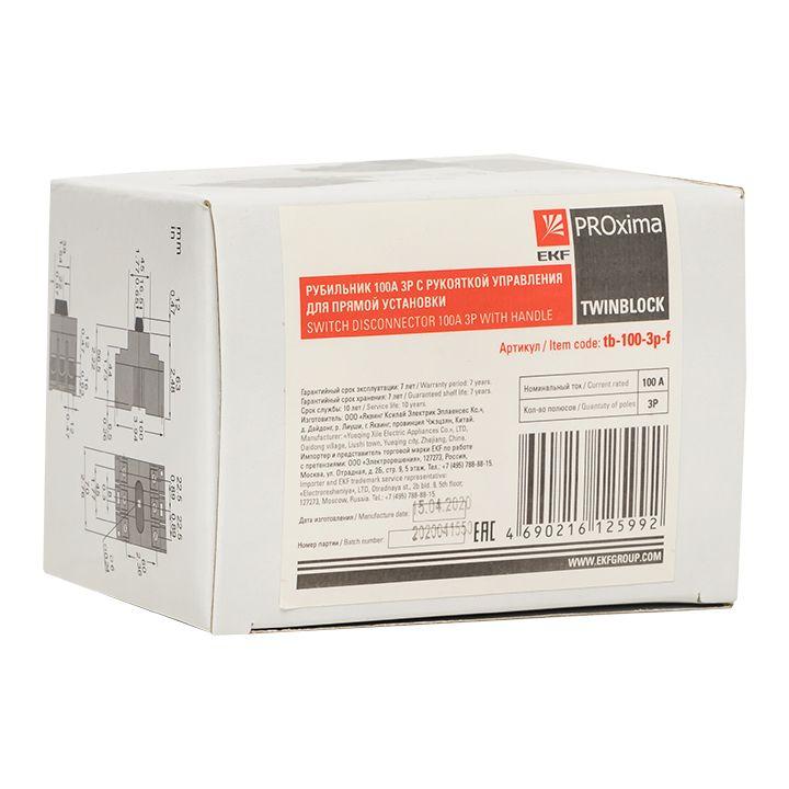 Рубильник 3п 100А с рукояткой управления для прямой установки TwinBlock PROxima EKF tb-100-3p-f
