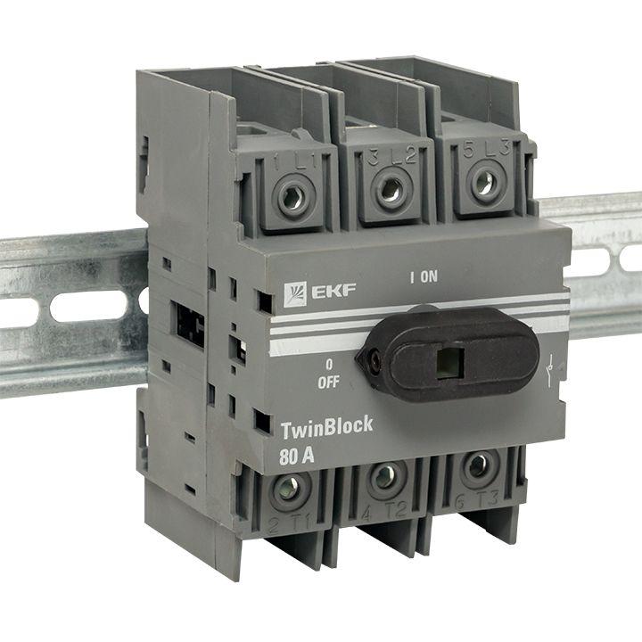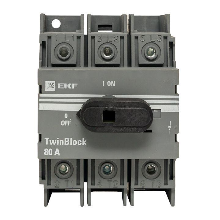 Рубильник 3п 80А с рукояткой управления для прямой установки TwinBlock PROxima EKF tb-80-3p-f