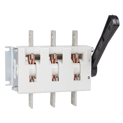 Выключатель-разъединитель 3 полюсный на номинальный ток 630 А, в котором установлена несъемная рукоятка.