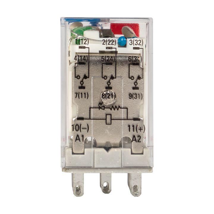Реле промежуточное RPAt 22/3 10А 24В DC с кнопкой и мех. индикацией AVERES EKF rpat-22-3-24DC