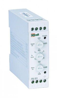 Реле контроля фаз DEKraft РК-101 предназначены для сигнализации и управления коммутационными аппаратами, которые в свою очередь включают или отключают электрооборудование при некачественном сетевом напряжении. Реле выполняет следующие функции контроля сети: контроль чередования фаз, контроль обрыва фазы, контроль перенапряжения, контроль падения напряжения. Реле контроля фаз широко применяется в бытовой сфере и промышленности особенно в системах автоматического ввода резерва (АВР), защиты асинхронных электродвигателей. При подаче на реле контроля фаз трехфазного напряжения допустимой величины, которое лежит в пределах между Uмакс и Uмин, с прямым порядком чередования фаз происходит замыкание контактов 15-18 и размыкание контактов 15-16. При изменении трехфазного напряжения, которое выходит за пределы установленного диапазона или произошло изменение чередования фаз, или обрыв фазы происходит размыкание контактов 15-18 и замыкание контактов 15-16. А также загорается световая индикация причины срабатывания реле контроля фаз.