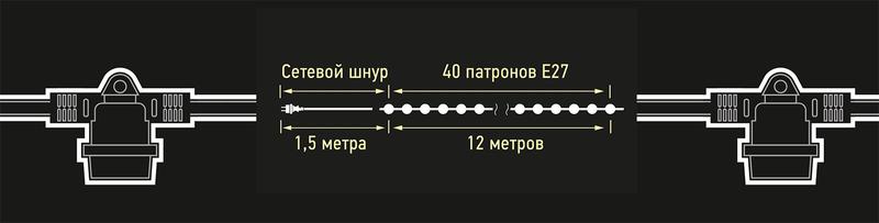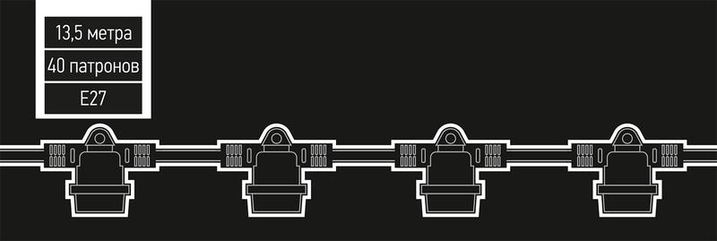 Гирлянда уличная "Белт-лайт" PBL-S40/L12+1.5 Black E27 IP65 12м 40ламп 1.5м шнур соедин. в линию max750Вт (лампы не в компл.; возможно использов. с фитолампами в теплице) JazzWay 5040564A