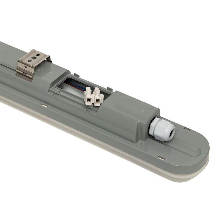 Пылевлагозащитный светодиодный светильник отлично подходит для работы в тяжёлых эксплуатационных условиях. Корпус выполнен из поликарбоната с ультрафиолетовой защитой и увеличенной цветопередачей. Драйвер светильника устойчив к перепадам напряжения от 176 В до 256 В и защищён от перегрева и перегрузок.