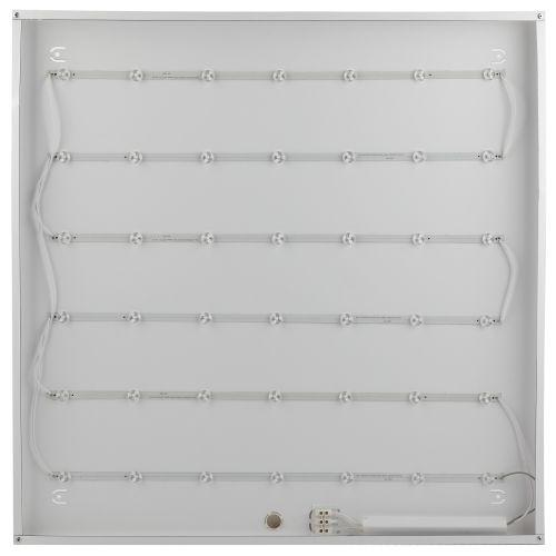 Светодиодная панель. Светит, как ультратонкая панель приятным равномерным светом, и не уступает по яркости, при этом имеет значительно более низкую цену. Драйвер встроен в корпус светильник полностью готов к установке и легко монтируется на потолок любого типа как в качестве встраиваемого светильника, так и накладным или подвесным способом. Легко устанавливается в потолки Армстронг, на гипсокартонные, бетонные потолки. Позволяет в разы ускорить, а значит и удешевить монтаж. Светильник создайт качественный ровный свет: индекс цветопередачи Ra - выше 80, что обеспечивает отличную цветопередачу; коэффициент пульсаций - ниже 5% - соответствует самым жестким требованиям СанПин. Такое освещение рекомендовано для учебных, дошкольных, медицинских учреждений. Является идеальным решением для офисных и общественных пространств. Цветовая температура: 4000 К - естественный дневной свет. Габаритная яркость: 3550 кд/м2. Класс светораспределения: П. Класс по ограничению яркости: 1.