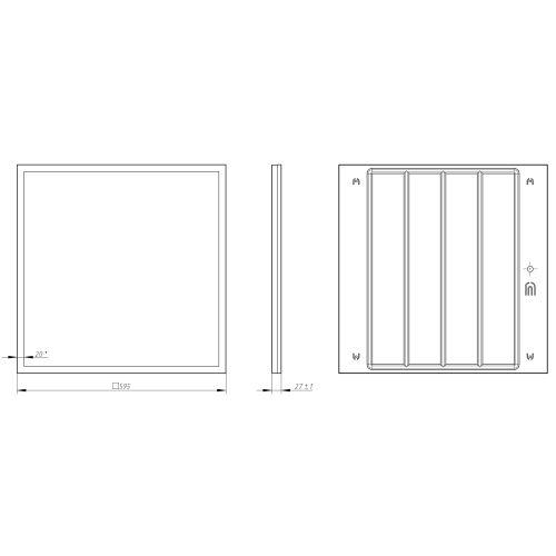 Светодиодная панель мощностью . Светит, как ультратонкая панель приятным равномерным светом, и не уступает по яркости, при этом имеет значительно более низкую цену. Драйвер встроен в корпус светильник полностью готов к установке и легко монтируется на потолок любого типа как в качестве встраиваемого светильника, так и накладным или подвесным способом. Легко устанавливается в потолки Армстронг, на гипсокартонные, бетонные потолки. Позволяет в разы ускорить, а значит и удешевить монтаж. Цветовая температура: 4000 К , повышающий работоспособность и концентрацию внимания. Светильник создаёт качественный ровный свет: индекс цветопередачи Ra - выше 80, что обеспечивает отличную цветопередачу; коэффициент пульсаций - ниже 5% - соответствует самым жестким требованиям СанПин. Такое освещение рекомендовано для учебных, дошкольных, медицинских учреждений. Является идеальным решением для офисных и общественных пространств. Габаритная яркость: 3550 кд/м2. Класс светораспределения: П. Класс по ограничению яркости: 1.
