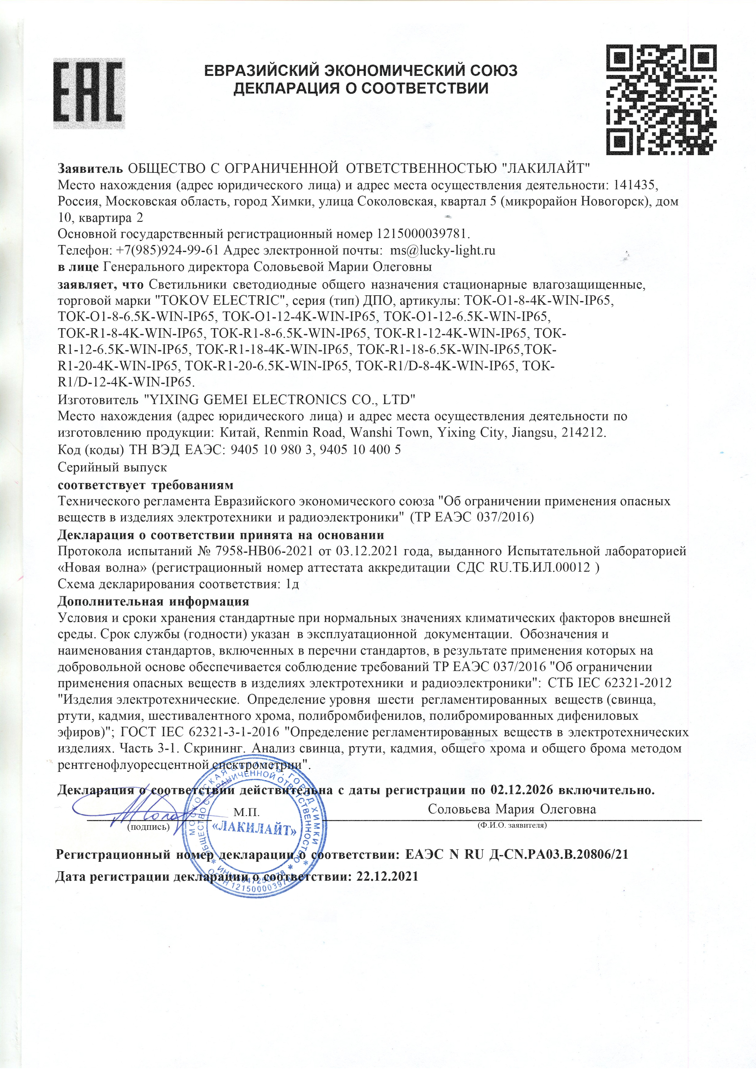 | Степень защиты IP: | IP65 |