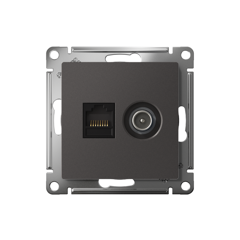 Розетка компьютерная + телевизионная 2-м AtlasDesign RJ45 кат.5E базальт SE ATN001489