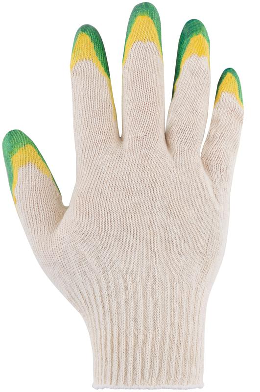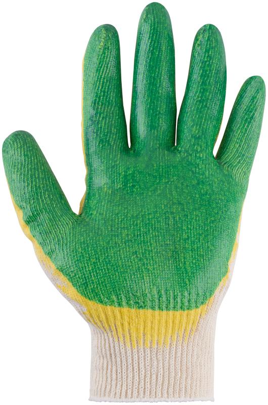 Перчатки вязаные с латексным покрытием предназначены для строительных и погрузочно-разгрузочных работ. Ладонная часть усилена двойным слоем латекса, что обеспечивает надежную защиту от порезов, проколов, заноз. Перчатки устойчивы к истиранию, не пропускают воду в местах нанесения латекса. Вязаная структура ткани способствует поступлению воздуха, что позволяет работать длительное время без замены перчаток.
