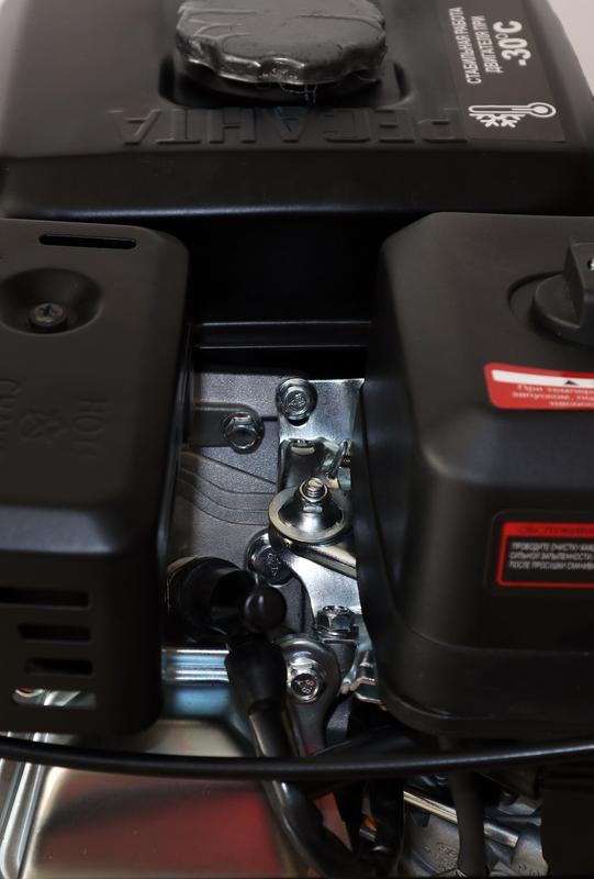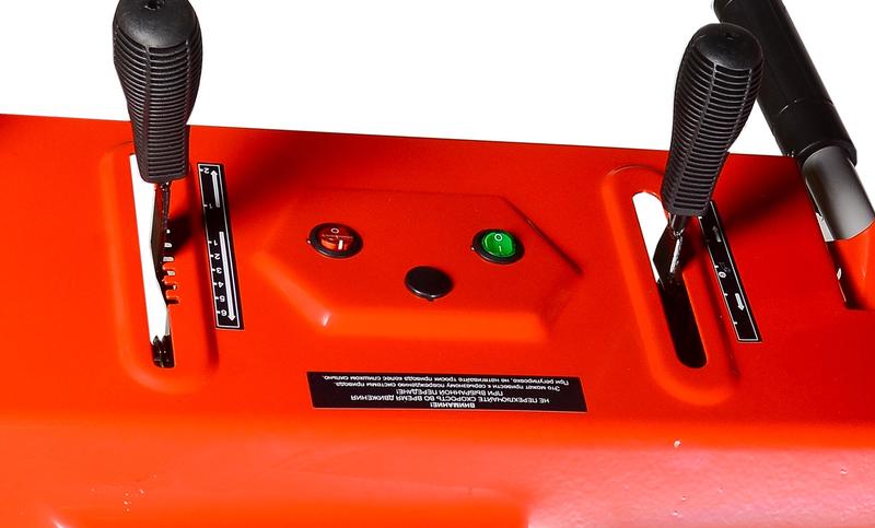 Рычаг регулирования скорости располагается на панели оператора. Рукоятка управления направления и дальности выброса также имеет удобное расположение, что позволяет легко менять настройки на ходу. В модели СБ 4800 ПЭ Ресанта предусмотрено максимальное количество скоростей 6 вперед и 2 назад.