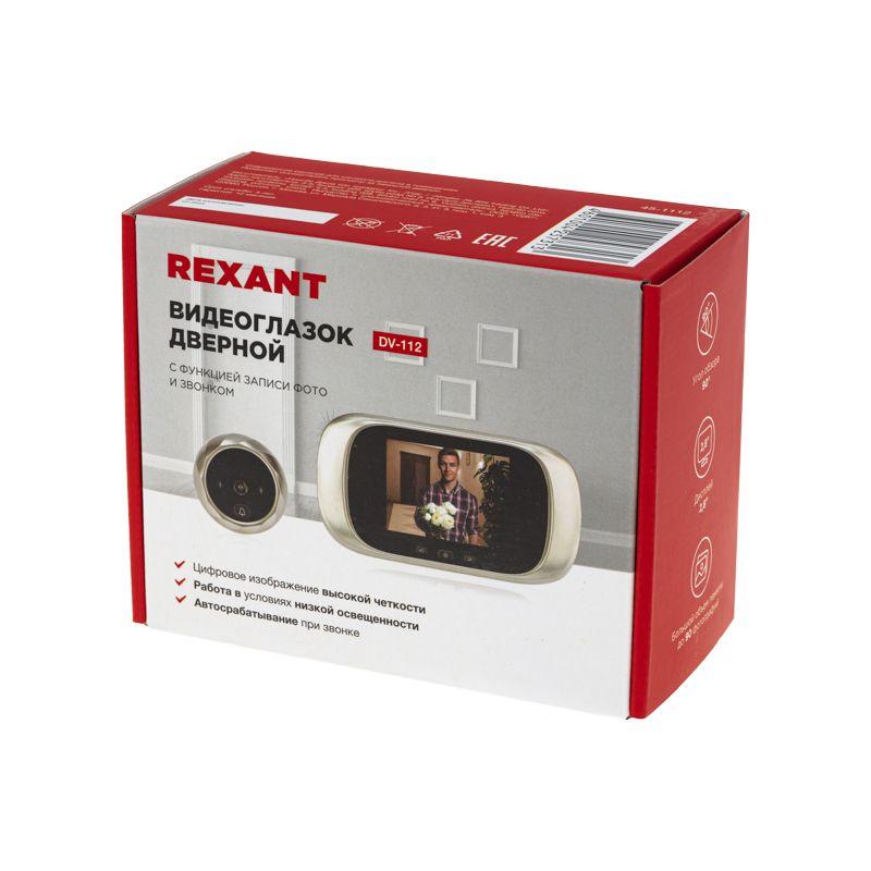 Видеоглазок дверной DV-112 с цветным LCD-дисплеем 2.8дюйм с функцией записи фото и звонком Rexant 45-1112