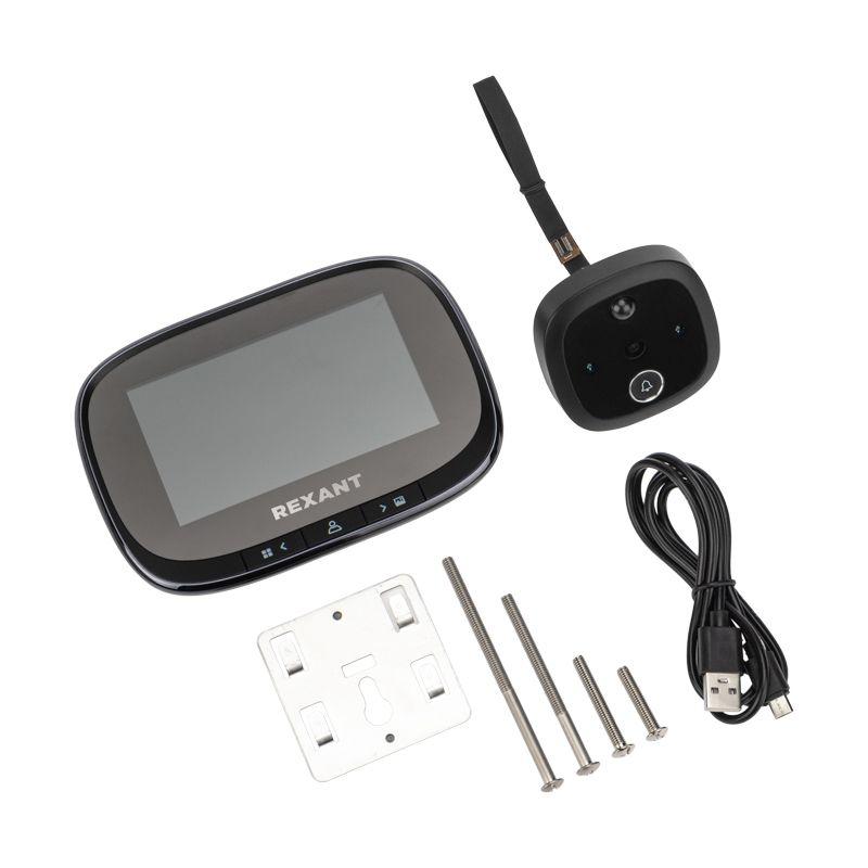 Видеоглазок дверной DV-115 с цветным LCD-дисплеем 4.3дюйм с функцией записи фото/видео по движ. встр. звонок ночн. реж. работы Rexant 45-1115