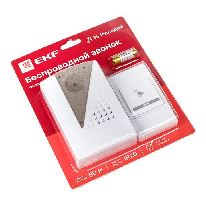 Звонок беспроводной 36 мелод. 80м с индик. на батарейках 004 2х1.5В АA бел.-сер. Basic EKF DBB-A-004