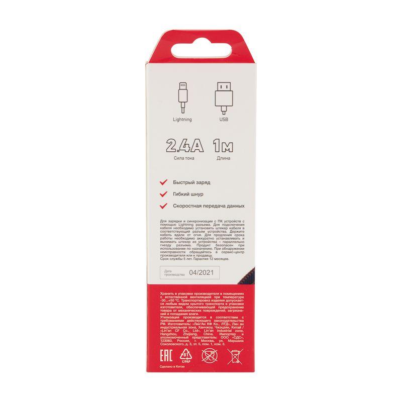 Кабель USB для iPhone 5/6/7 моделей шнур в джинс. оплетке Rexant 18-4248
